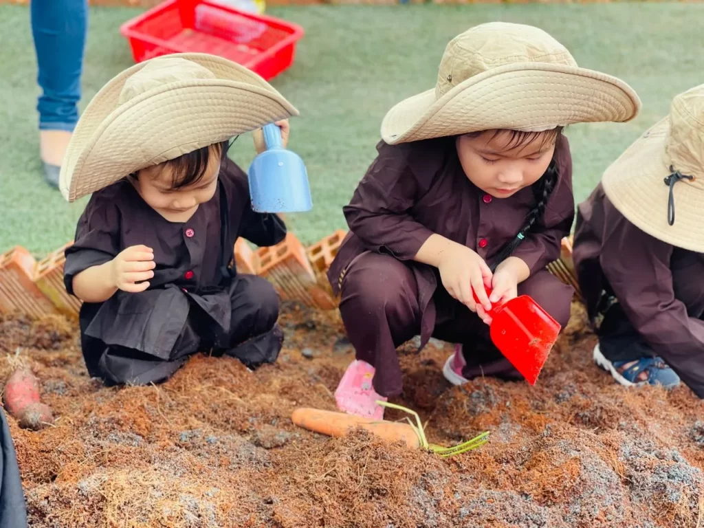 Giáo trình được xây dựng dựa trên nhu cầu thực tế của trẻ theo từng độ tuổi thông qua các hình thức tiếp cận: Dự án, Reggio, Steam, Montessori và trải nghiệm thực tế.